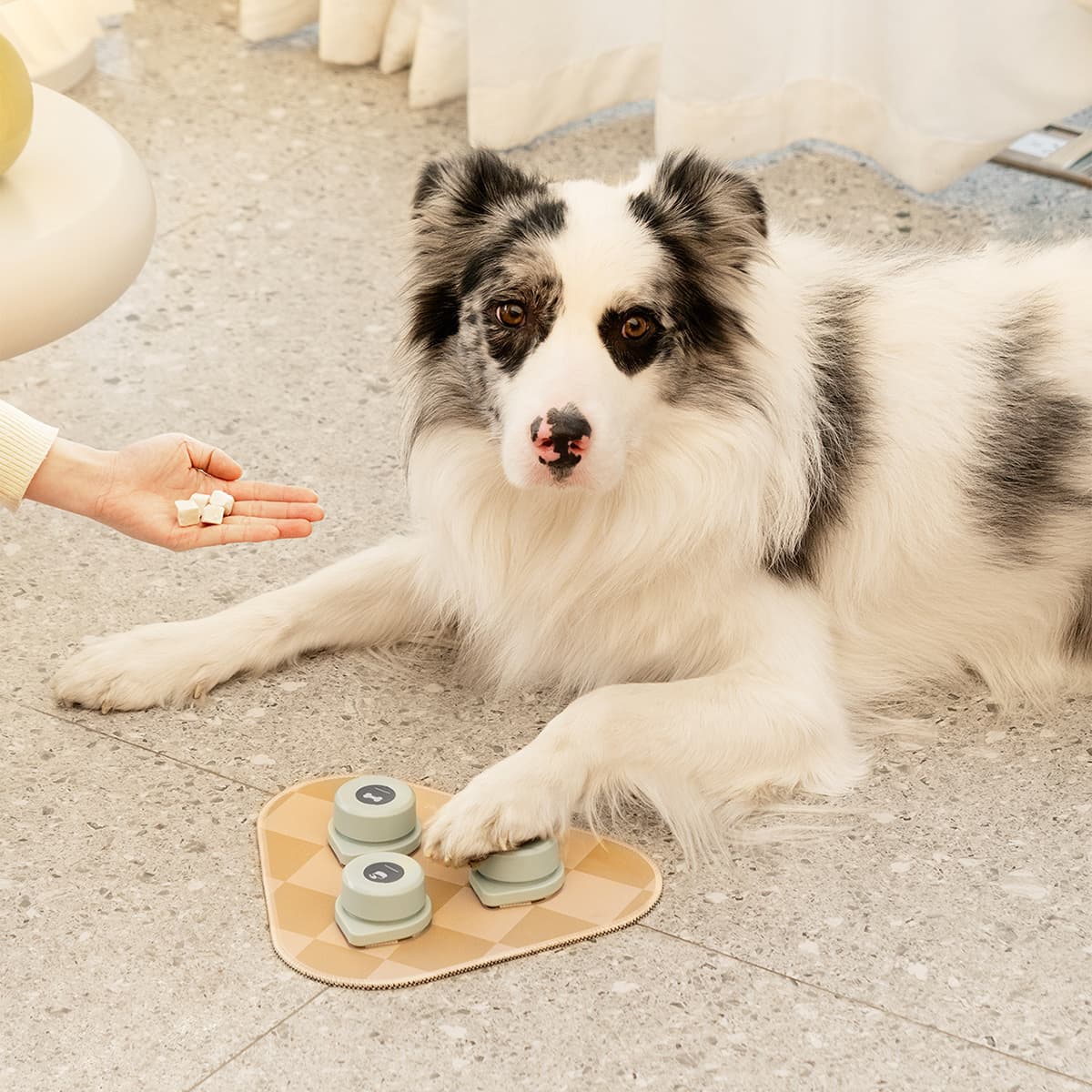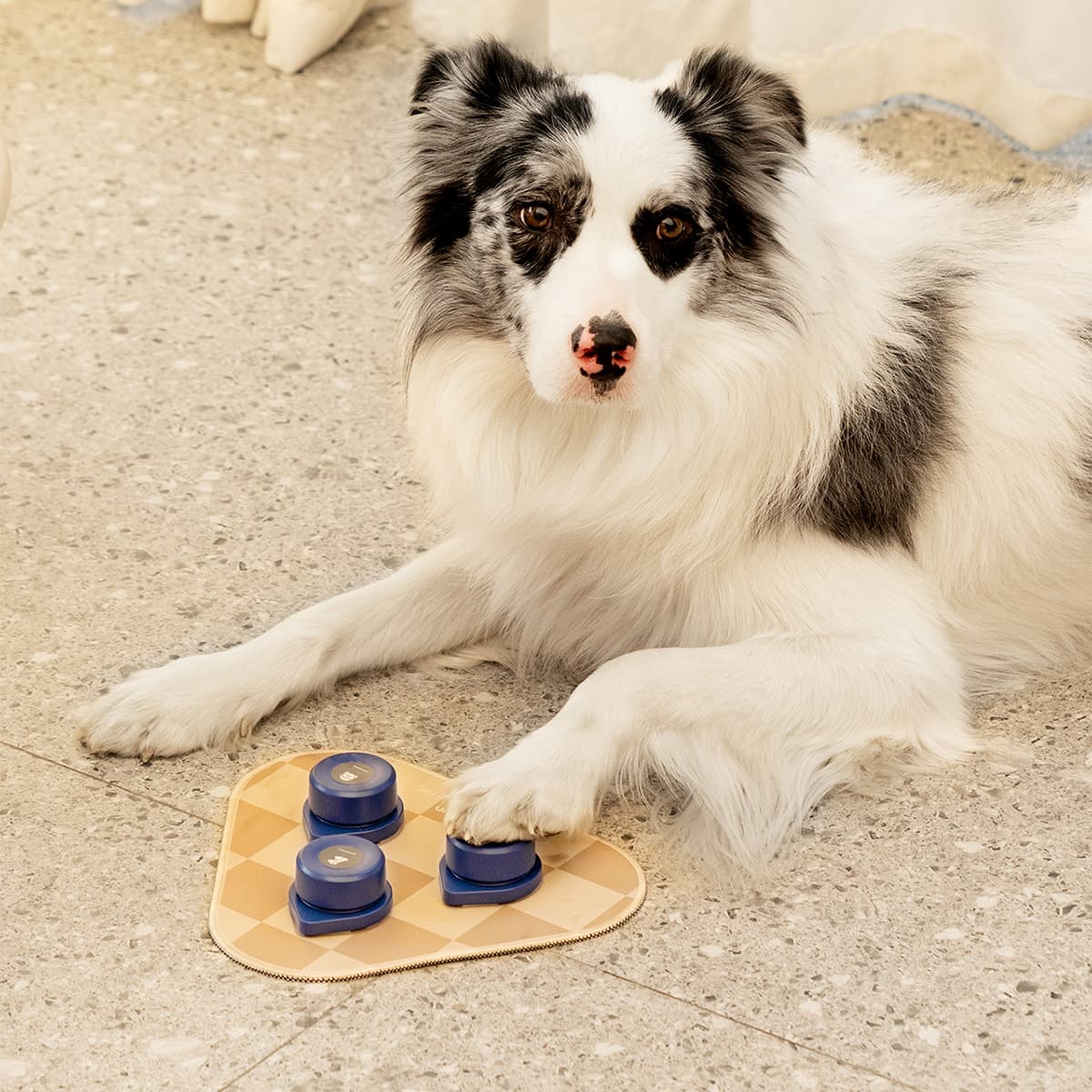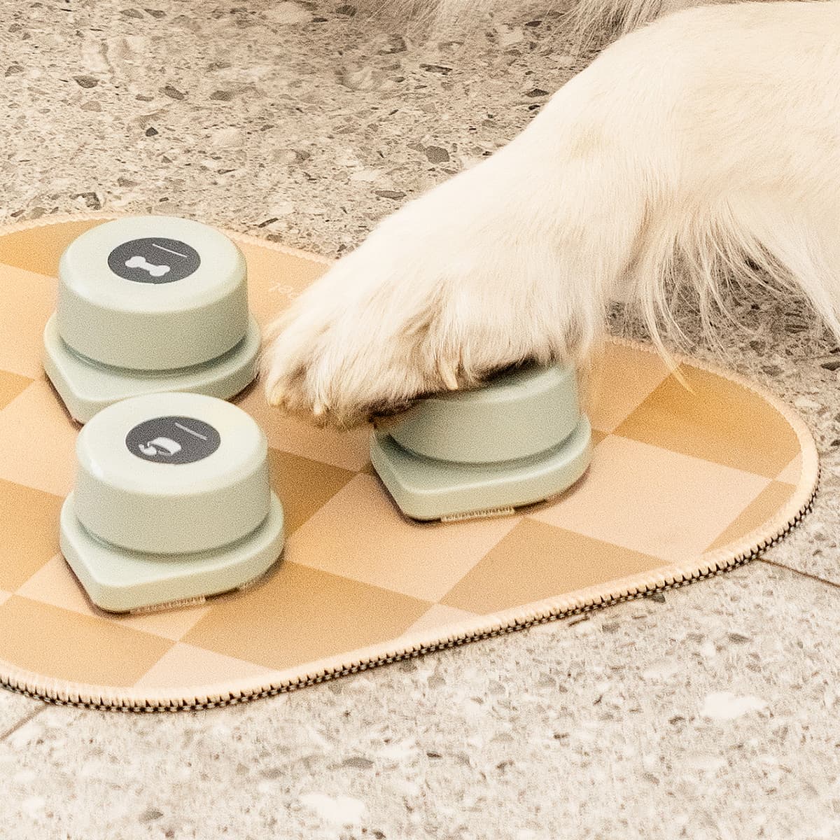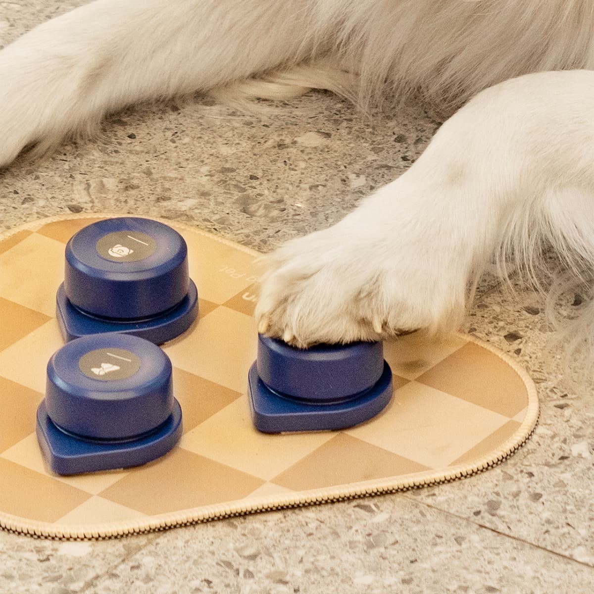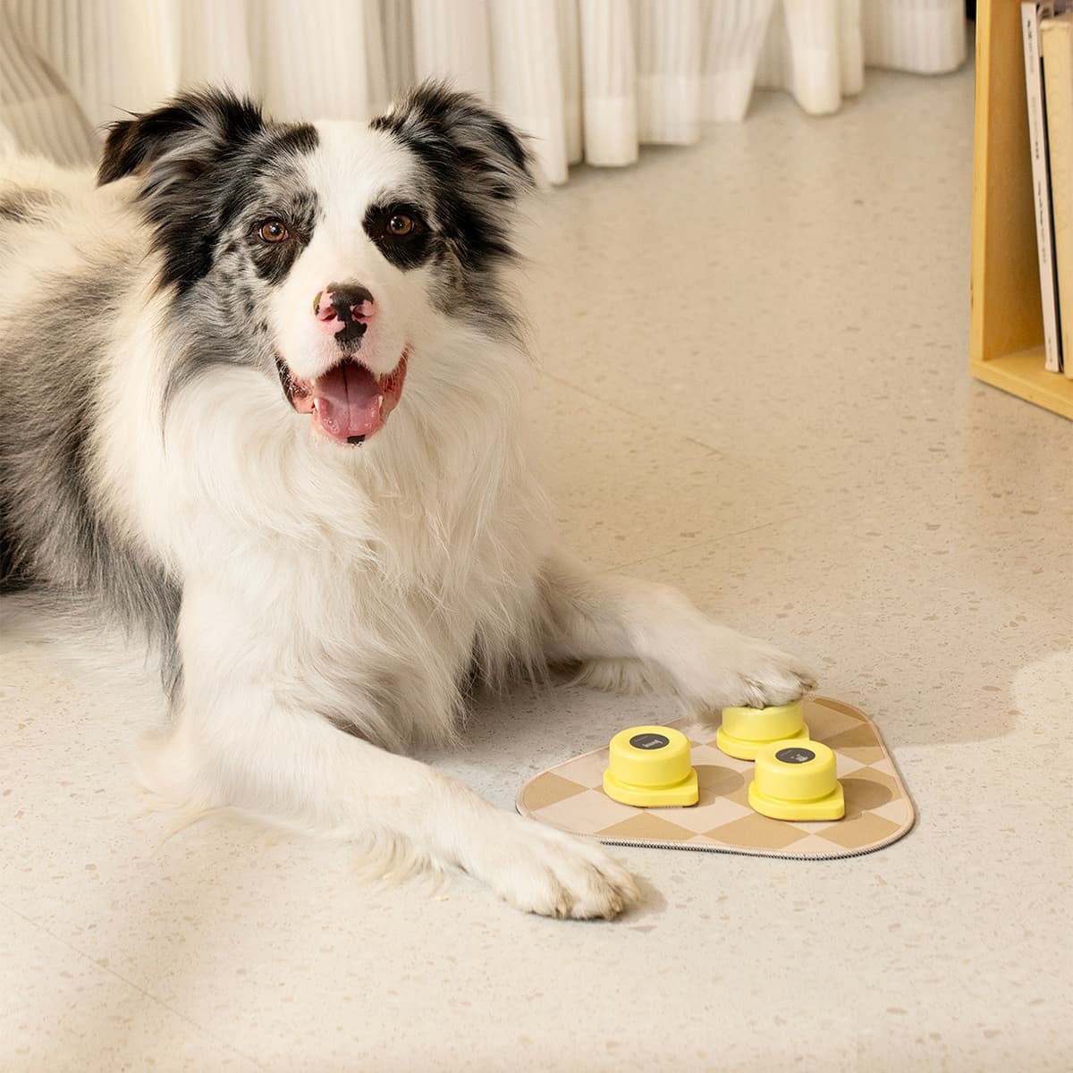 Mini Talking Buttons with Mat enhance dog training by enabling message and command recording. They feature high-quality sound, a non-skid mat with strong Velcro, and easy recording functions. Crafted from durable ABS plastic and rubber, these buttons streamline training and improve interaction with your pet.