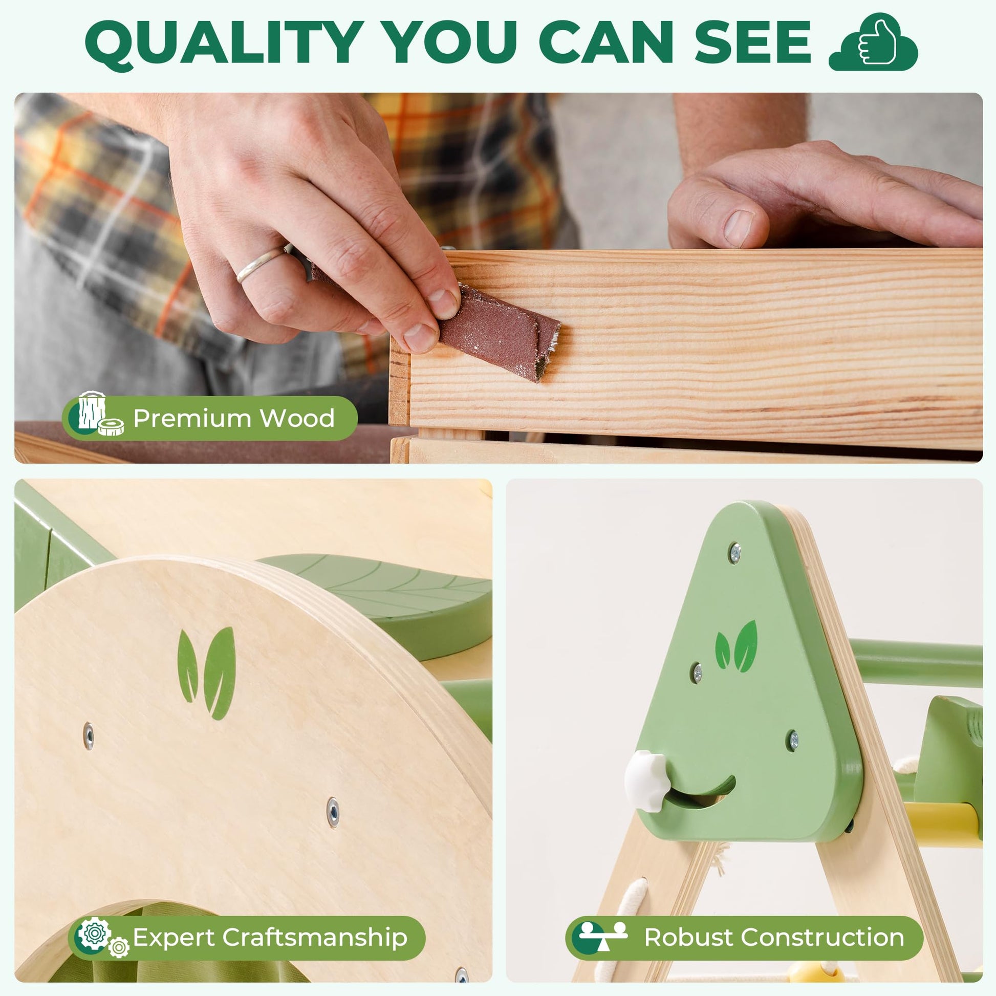 Multifunctional Play Set: This 5-in-1 set includes a climbing tripod, ladder, slide, and ramp. The unique arch can also be flipped upside down to double as a rocking chair or wooden horse, providing various ways to play and spark your child's imagination.