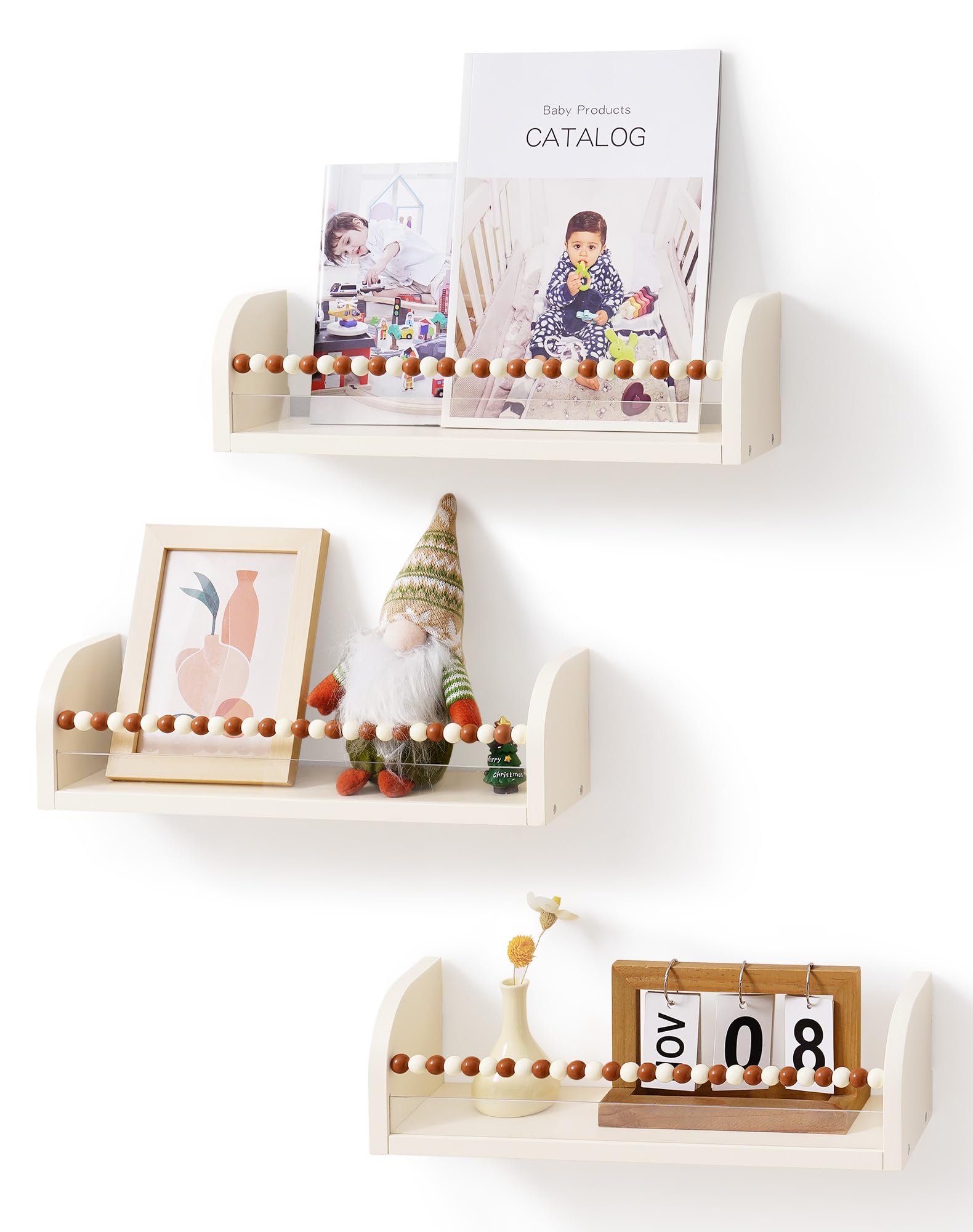 ¡¾Upgraded Dual-Guard¡¿ Our floating shelves for wall come with wooden beads and transparent baffles, providing double protection to prevent toddler toys, books and other items from sliding off the floating shelf, providing upgraded protection for children's safety. At the same time, the design of the floating book shelves for wall wooden beads also adds more interesting and cute style.
