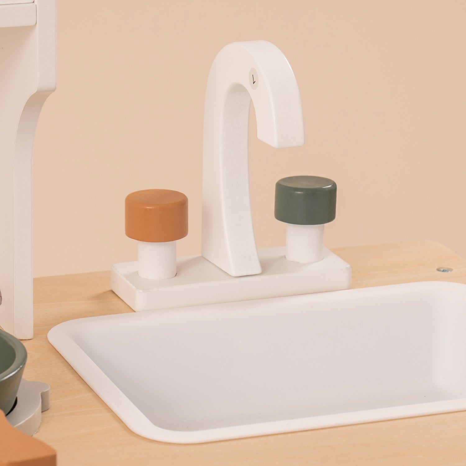 - Kitchen Accessories Included:ROBUD wooden kitchen sets for kids equipped with a stove sink oven clock and play kitchen accessories such as toy pots£¬ pans and knife.
