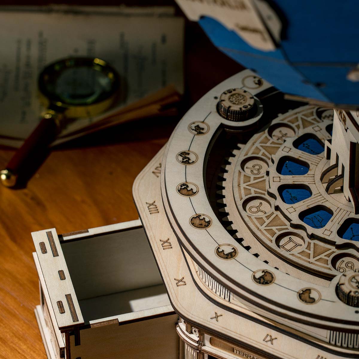Robotime-ROKR The Globe ST002 is a huge classic-style wooden globe model from the Curious Discovery Series. Its beautifully designed structure is sturdy enough and also rotatable. It also has a secret drawer that needs to encode the constellation lock. It will definitely be a big challenge to your hands & mind! Enjoy a wonderful self-assembling experience with this ROKR 3D wooden puzzle!