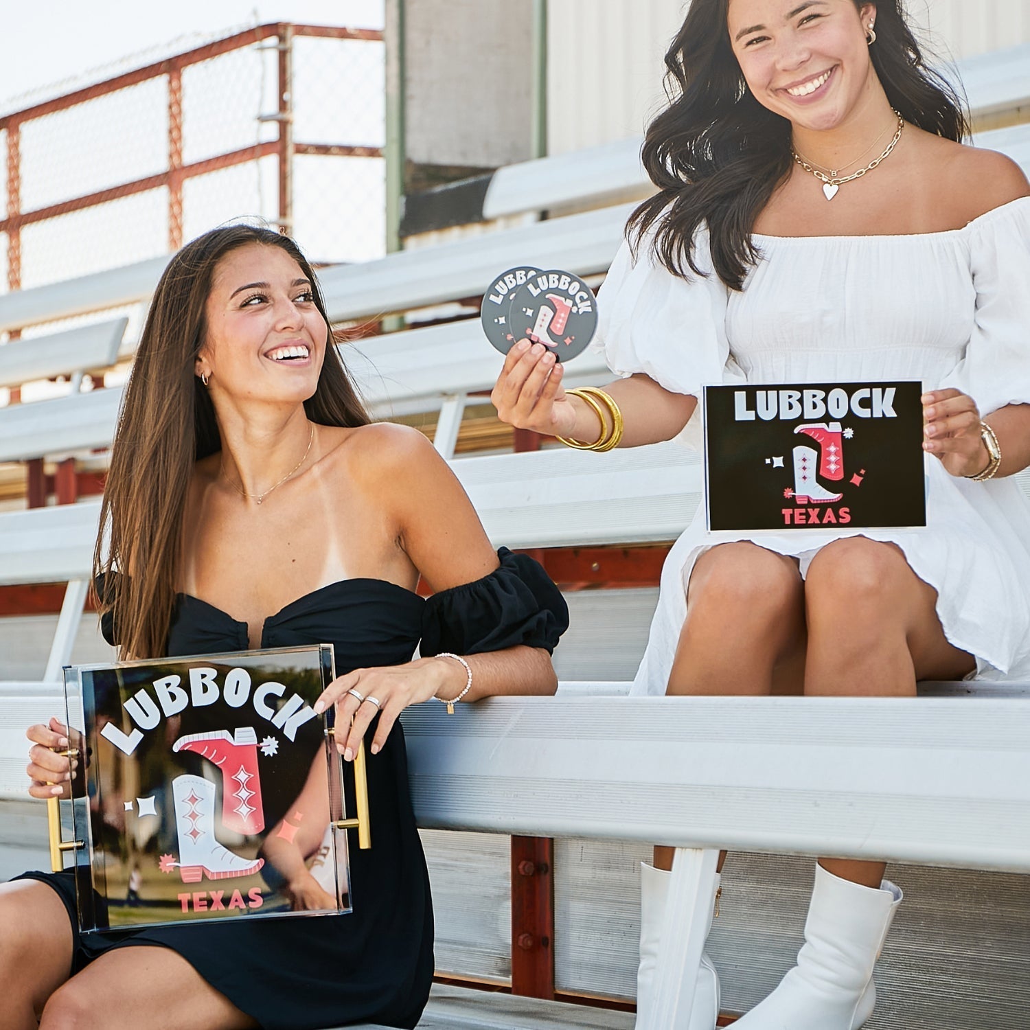 Score double the fun with these acrylic drink coasters featuring your college town and a cowboy boot design! Protect your surfaces while repping your school spirit in a playful, quirky way. Game on, y'all!